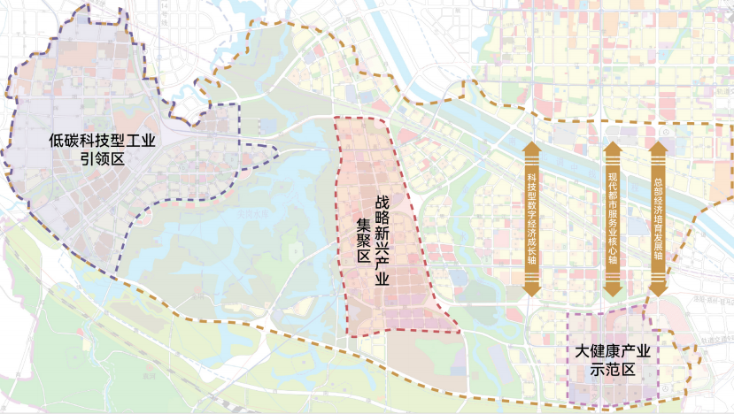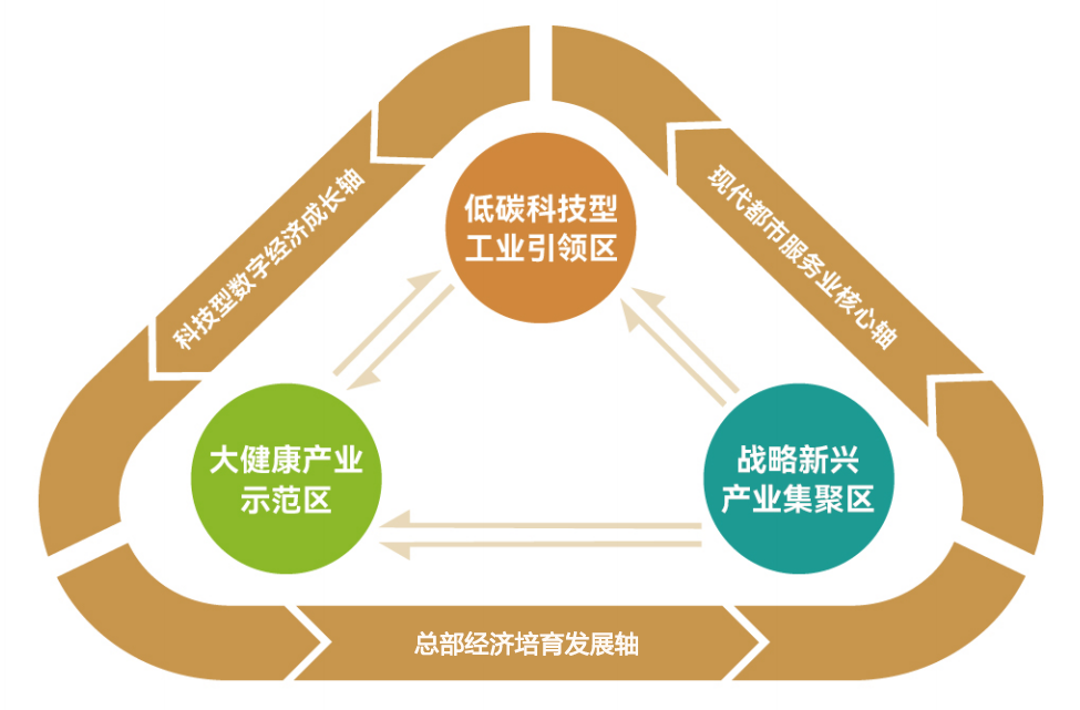 三区即:低碳科技型工业引领区、大健康产业示范区、战略新兴产业集聚区。