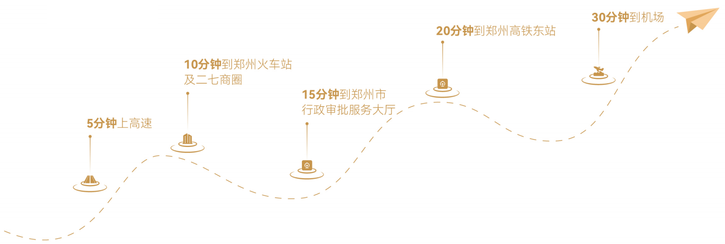 一小时交通辐射半径:通达郑州市六区六县 (中原区、二七区、金水区、惠济区、管城区、上街区;荣阳市、巩义市、登封市、新密市、新郑市、中牟县) 及周边洛阳、许昌、新乡等省内发达城市。